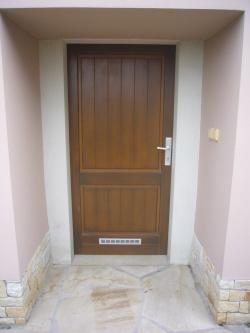 Dveře jsou vyrobeny z třívrstvé napojované/ fixní lepené lamely (BO, SM, DG, Meranti) o profilech 68x 82 mm. Standardně jsou zaskleny termoizolačním dvojsklem 4-16-4 1,1 W/m2K, na přání termoizolačním dvojsklem 4-16-4 TGI 1,0 W/m2K nebo PUR deskou. Dveře jsou opatřeny celoobvodovým kování ROTO, těsněním, prahem s přerušeným tepelným mostem a tříbodovým zámkem. Kvalitní povrchovou úpravu zajišťuje protiplísnová impregnace s konečnou úpravou lazurou REMERS.